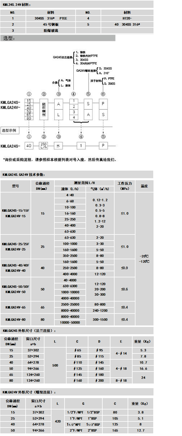KMLGA玻璃转子流量计与KML10S、KML20S、KML30S比较配备了叠层玻璃的保护罩,安全系数更高,不必从管道上拆下整机即可更换椎管与浮子。