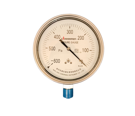 膜盒压力表(capsule pressure gauge)概述:膜盒压力表是用来检测微小压力的仪表。(一般测量低于60KPa的压力)。被广泛应用于医药、供暖、气体管道、燃烧装置、空气调节及很多工业领域。