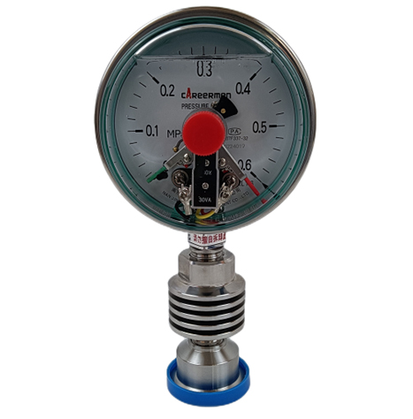 耐震电接点压力表可与不同材料膜片的隔离体配接,组成隔膜式电接点压力表,用于测量各种腐蚀性较强及粘度较大易结晶介质的压力。