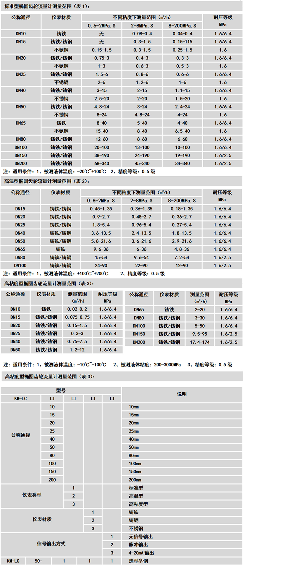 3、测量范围:见表1、2、3