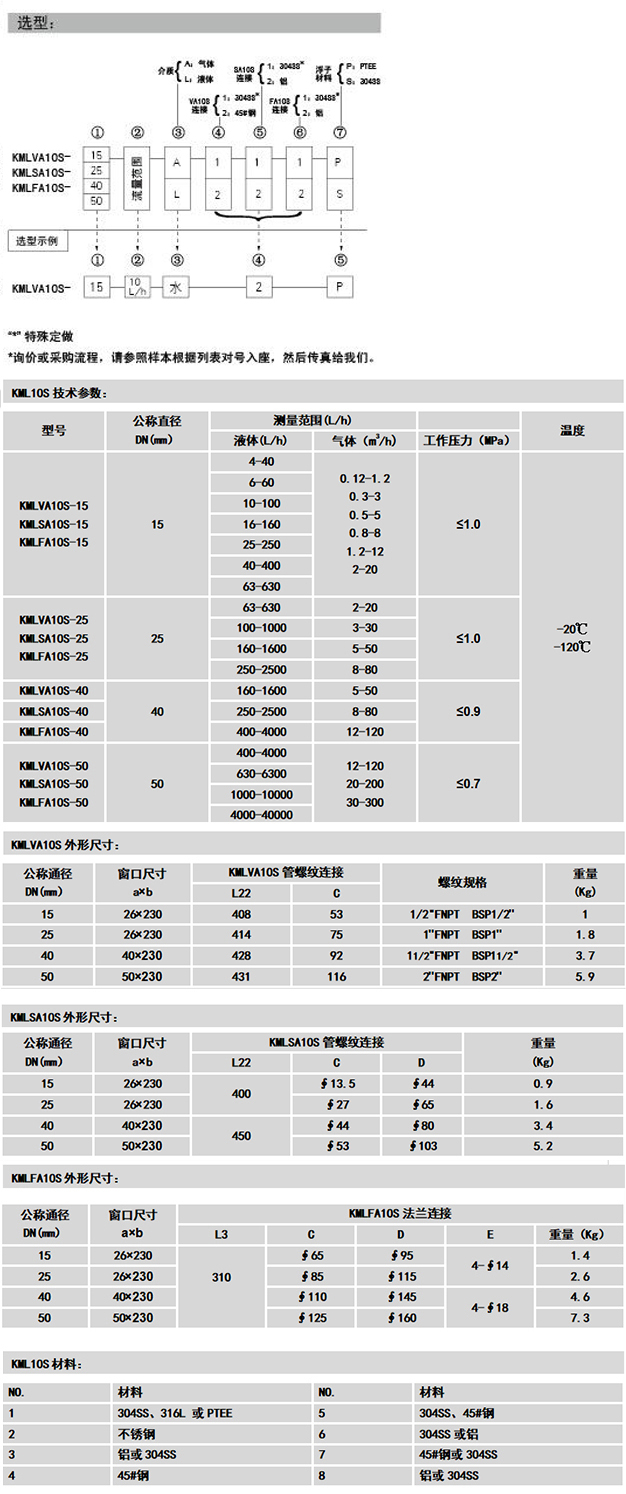 10S玻璃转子流量计是我公司的新产品,与同类产品相比具有测量精度高,互换性能好,连接方式多样化,KMLVA10S管螺纹连接,KMLSA10S软管连接,KMLFA10S法兰连接,精度等级互换2.5级,单标1.5级。