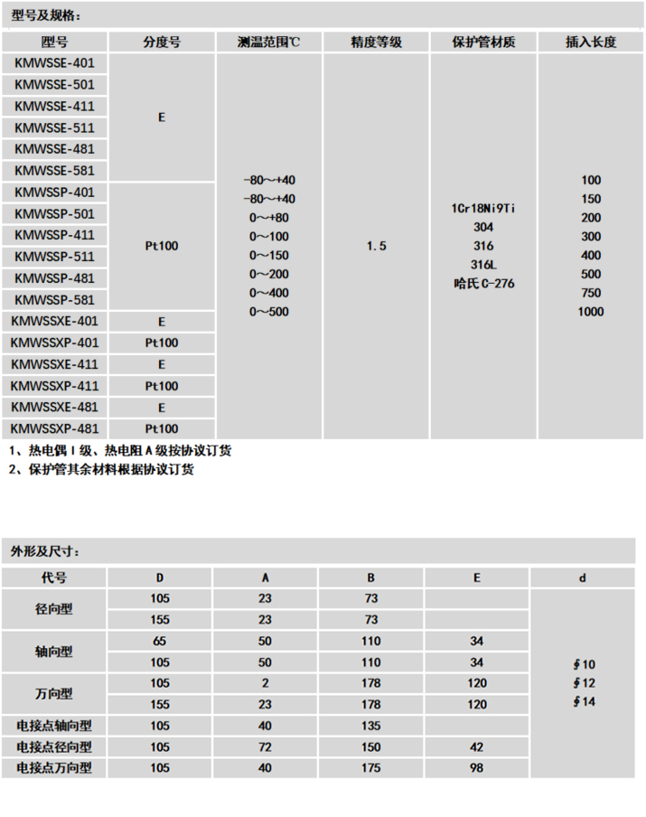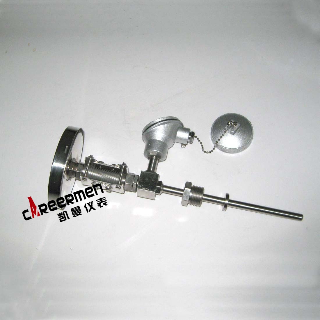 应用:采用双金属温度计与热电偶(阻)一体的方式,既满足现场测温需求,亦满足远距离传输需求。可以直接测量各种生产过程中的-80~+500℃范围内液体、蒸汽和气体介质以及固体表面温度。