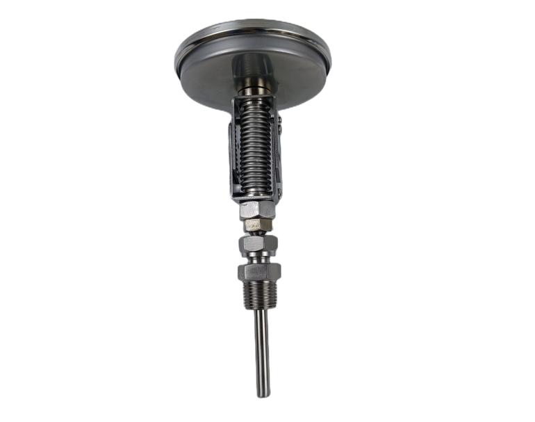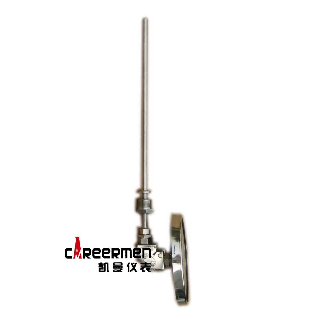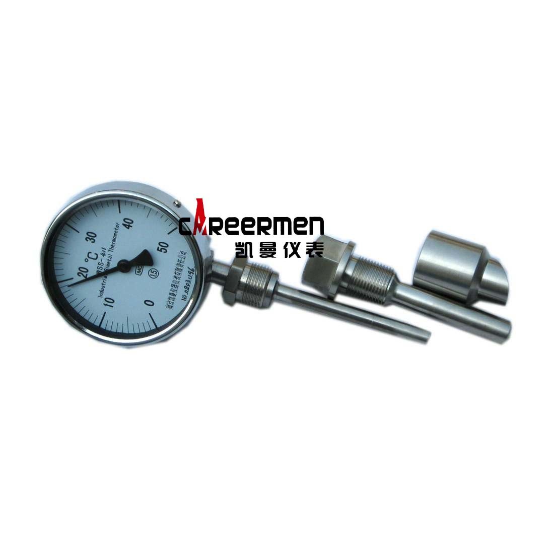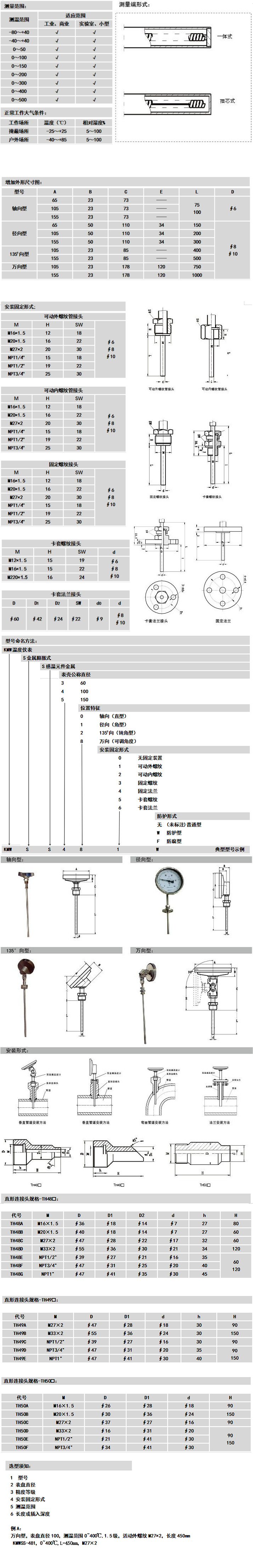 应用:双金属温度计是一种测量中低温度的现场检测仪表。可以直接测量各种生产过程中的-80~+500℃范围内液体、蒸汽和气体介质温度。