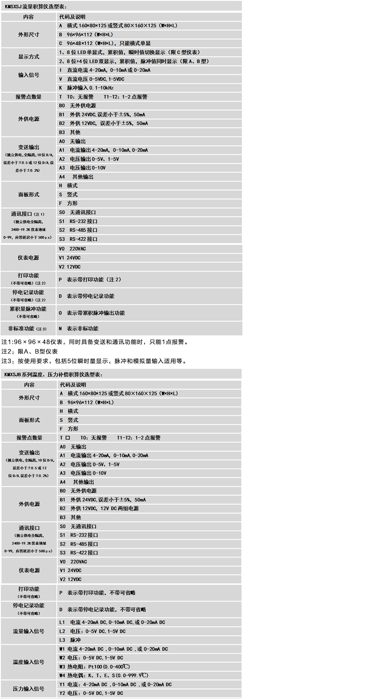 注1:96×96和96×48仪表,同时具备变送和通讯功能时,只能1点报警。